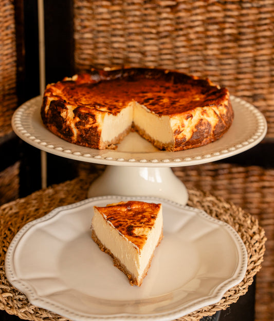 Originária de Espanha, em especial da região Basca. Com a sua capa caramelizada, interior irresistivelmente cremoso e um equilíbrio perfeito entre doçura e textura, esta sobremesa autêntica conquista pelo seu caráter orgânico e rústico.